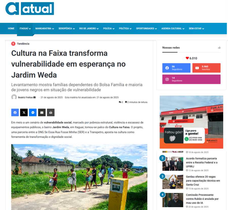 Em 21 de de dezembro o Jornal Atual divulgou – Cultura na Faixa transforma vulnerabilidade em esperança no Jardim Weda.